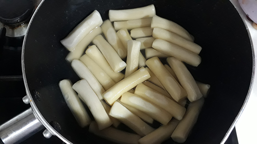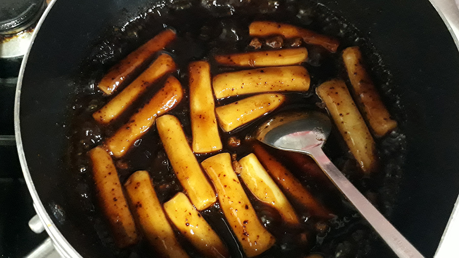 짜장떡볶이는 진짜 오랫만이라 향만 풍겨도 침이 꼴깍~ 조리법에는 물 300ml로 끓이라고 했는데, 개인적으로는