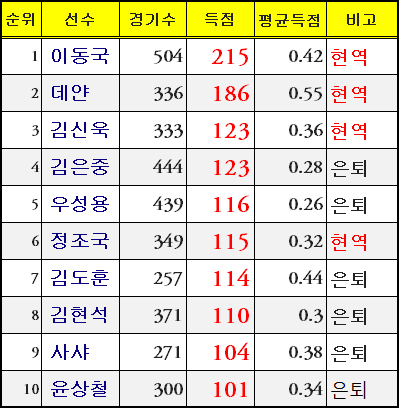 들어서는 상당히 많이 좋아졌다. 역대 K리그에서 어떤 선수가 가장 많을 골을 넣었는지 순위로 알아보자.