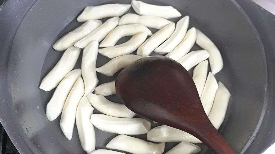 얼어버린 떡은 찬물에 해동을 꼭 시켜주고 조리하자. 얼어버린 떡을 바로 조리하면 떡이