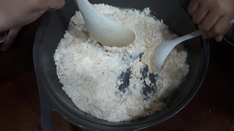 짜야하니, 차갑게 식어버리면 잘 짜지지도 않고, 힘들다. 처음엔 국자같은걸로 대충 뭉쳐주다가 손에 식용유