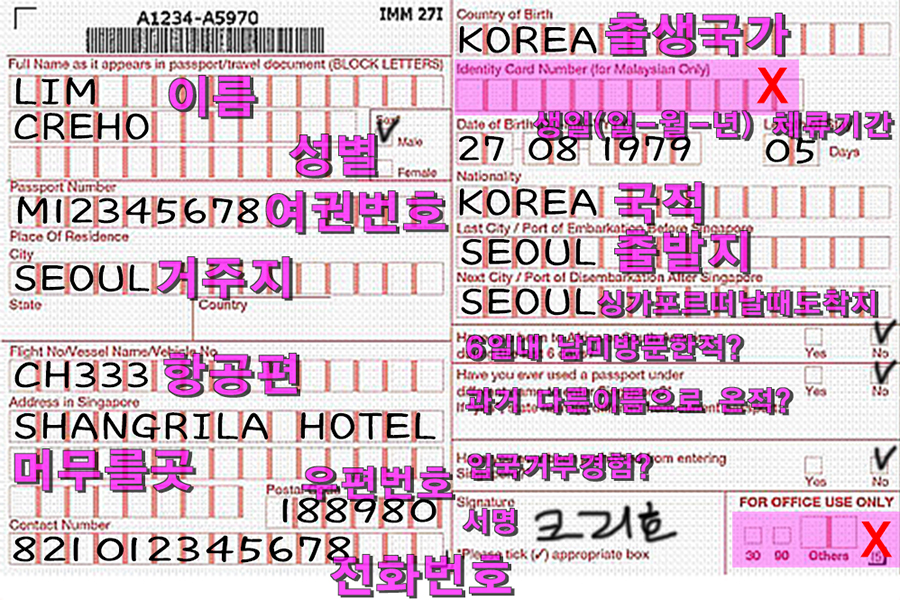 #싱가포르 입국신고서 작성법