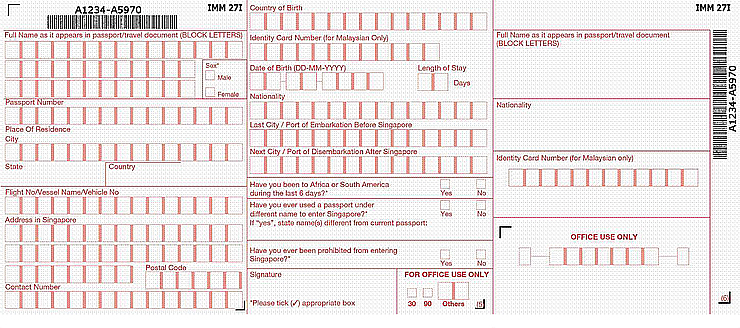 #싱가포르 출입국 신고서 양식