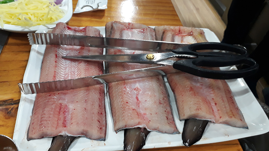 가격은 1kg (3마리) 69,000원인데, 무게를 달고 나오진 않는다고 한다. 3마리가 1kg 조금 넘는듯...