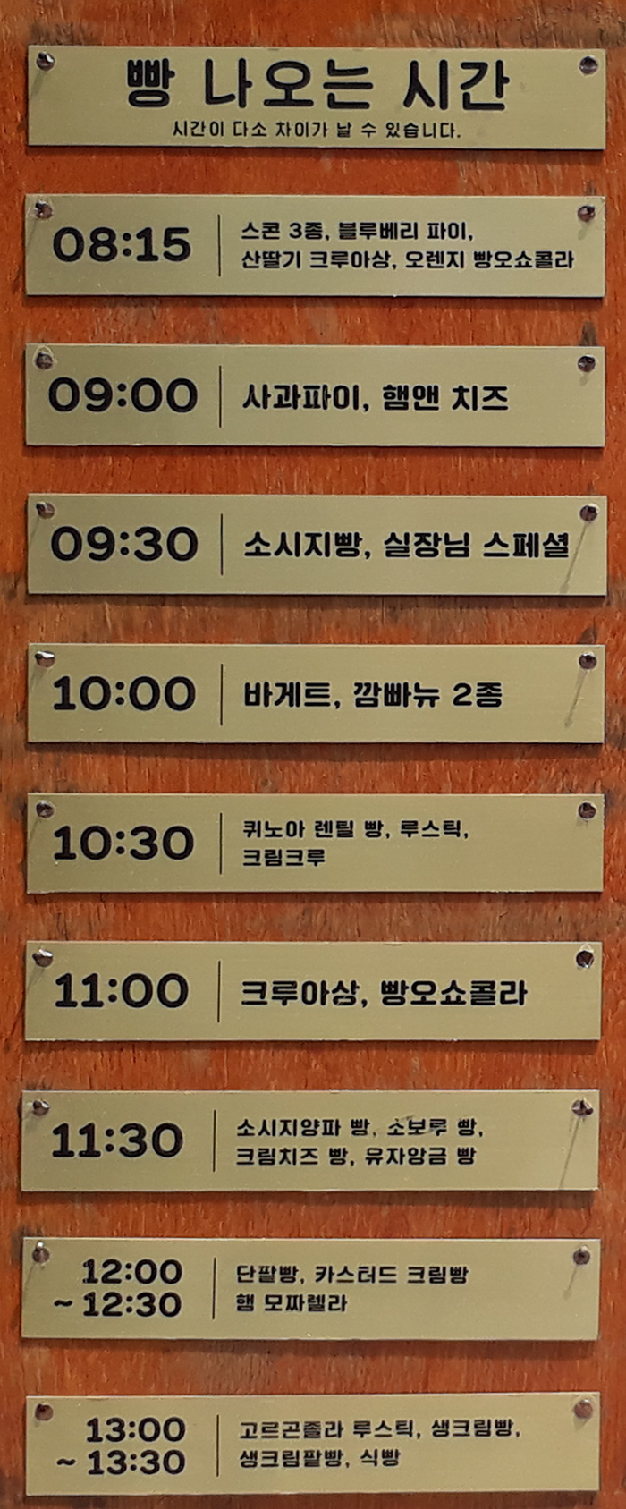 프릳츠 도화점. 빵 나오는 시간표.
