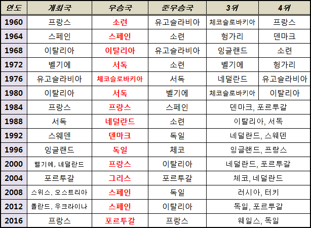 나라도 단 한나라뿐인 대회. UEFA 유러피언 챔피언십의 최다우승국은 어디일까?