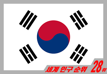 우리나라, 한국 대한민국의 인구는 대략 5,200만명이며 세계 순위로 봤을때는 28위이다.