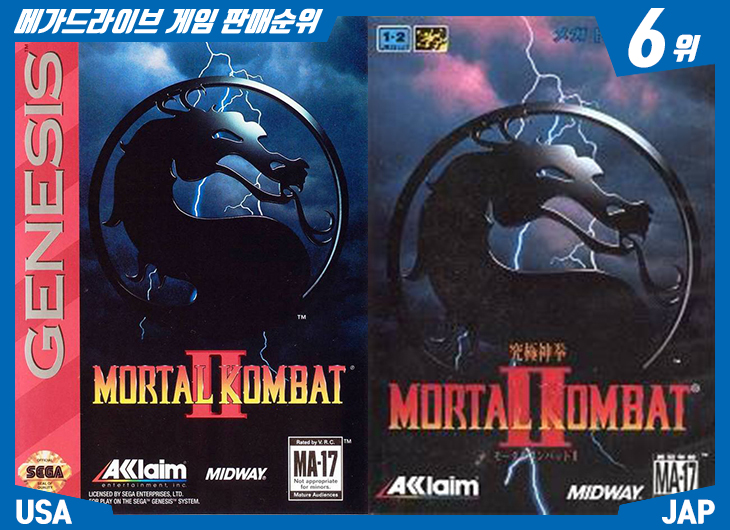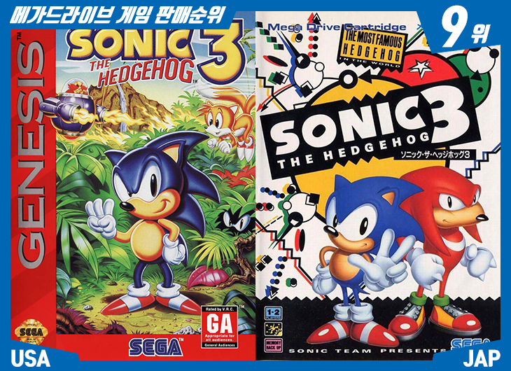 메가드라이브가 북미시장에서 크게 히트할수 있었던 원동력이라 볼 수 있는 소닉이 1위다. 1500만장이라는