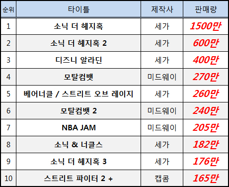 비디오게임계의 아이콘이었던 메가드라이브의 게임 판매량은 어떻게 될까? 순위로 알아보자.