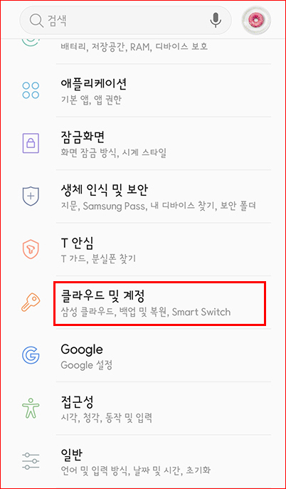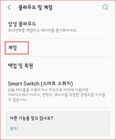 핸드폰 종류나 안드로이드 버전에 따라 이름이 살짝 다를 수 있다. '계정'이라는 문구가 있는 항목으로 진입하면 된다.