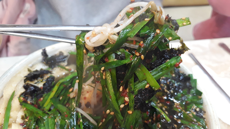 대중적으로 누구나 정말 맛있게 먹을 수 있는 맛이다. 얼큰부추국수는 잔치국수에 매콤한 양념과 고추가루. 그리고