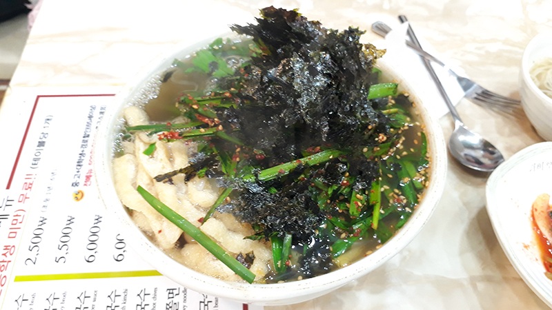 부추를 넣어 나오는데, 분명 멸치국물일텐데도 비린맛이 전혀없고 깔끔하면서도 간이 심심하지않게 참 맛있다.