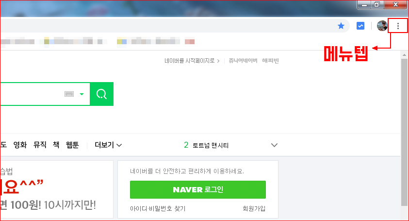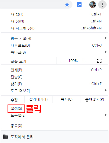 크롬 페이지 오른쪽 상단에는 점세개 모양의 메뉴텝이 있다. 클릭하면...