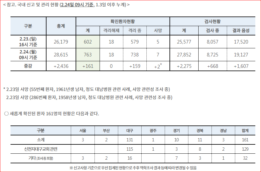 위 페이지는 대한민국 질병관리본부의 홈페이지로, 최근들어 하루 3차례씩 추가확진자, 격리자, 사망자