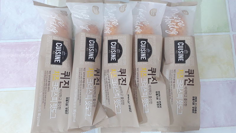 퀴진 치즈 크리스피 핫도그. 퀴진... 발음도 참 어렵다. 브렌드 이름은 일단 불합격! 암튼 각설하고, 나도 좋아하고