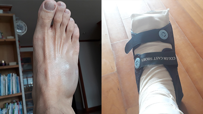 40살 넘어서 스케이트보드를 타가다 발등이 골절 될 거라 누가 상상이나 했겠는가!!! (통곡)
