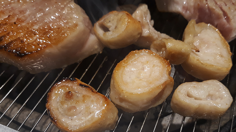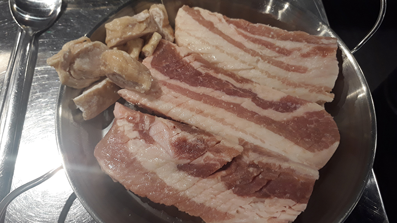 삼겹살은 진짜 두툼하면서 칼집 먹은 삼겹살이다. 무한리필집 삽겹살이라고는 보기 힘든 좋은고기.